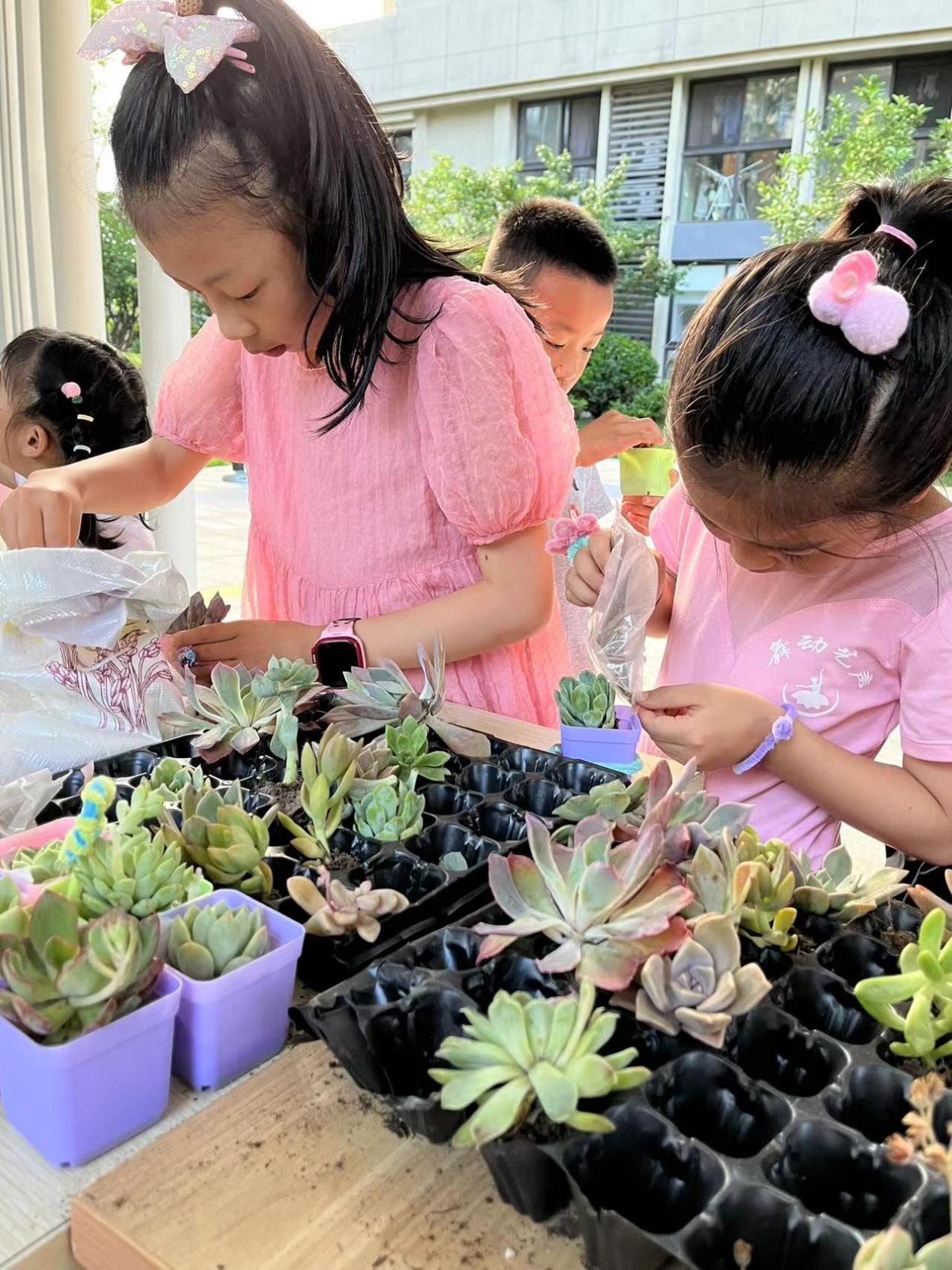 活动伊始,志愿者们为社区居民移栽多肉提供材料与种植帮助,让他们发挥自己的想象力和创造力,对多肉盆栽进行设计,在小小的一方天地中,塑造自己的小花园,探索植物的魅力,践行绿色生态生活方式。在志愿者和居民们的共同努力下,一株株多肉被成功移栽到盆栽中,居民们难掩欣喜,并把这一个个小小“世界”带回家。