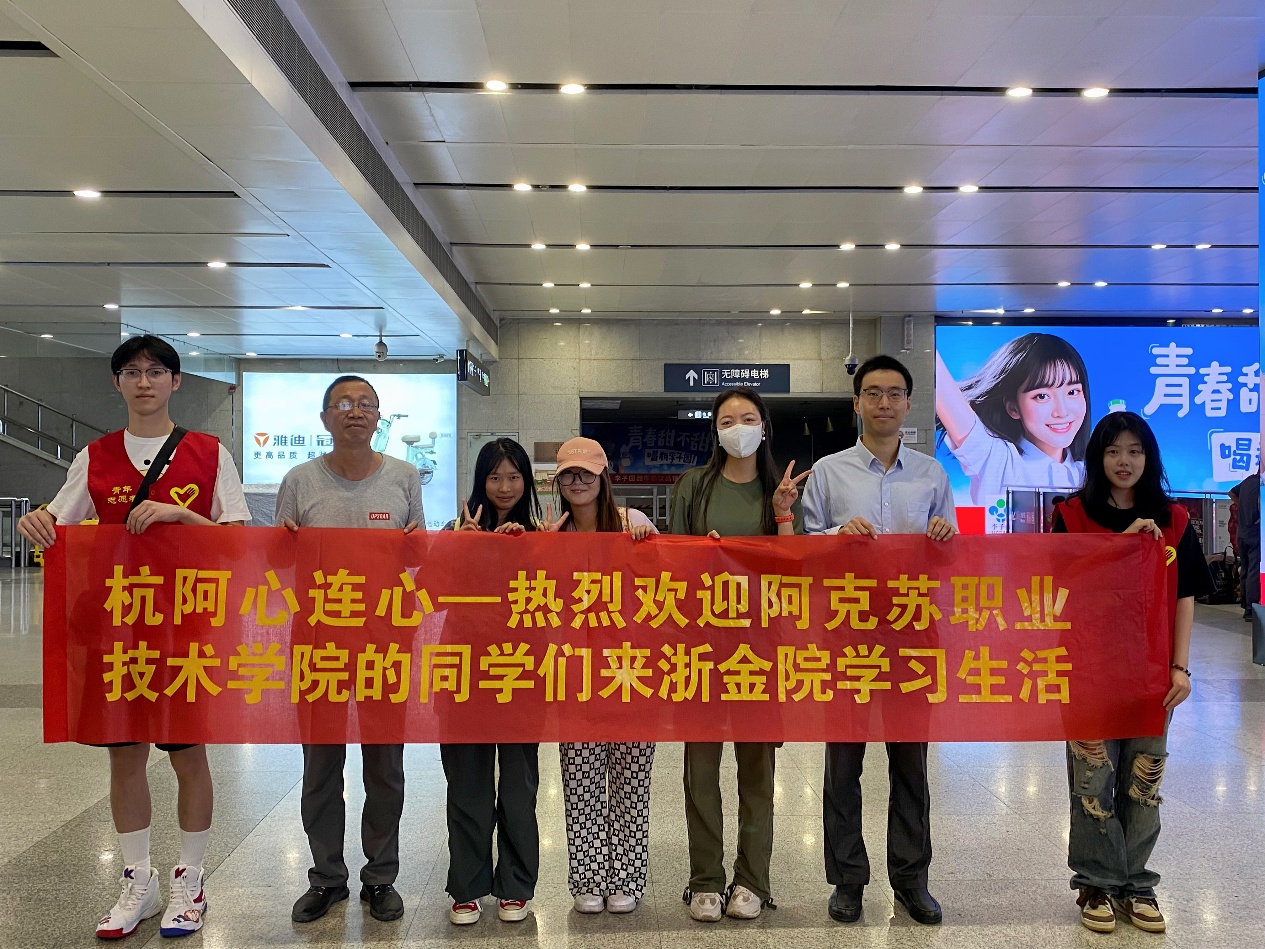 会计学院潘宁老师带领志愿者们前往杭州站迎接阿克苏职业技术学院的老师和同学们。