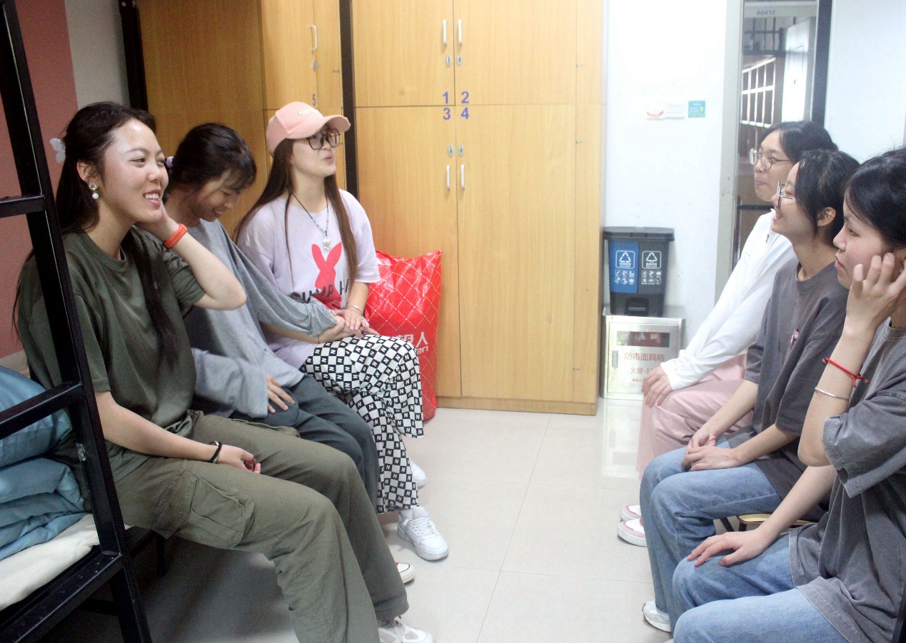 会计学院郑燕老师和学生代表带领阿克苏职业技术学院王思远老师和交流生们熟悉宿舍环境。会计学院的同学们已经提前将寝室打扫干净,为交流生们提供干净整洁、舒适温馨的宿舍环境。