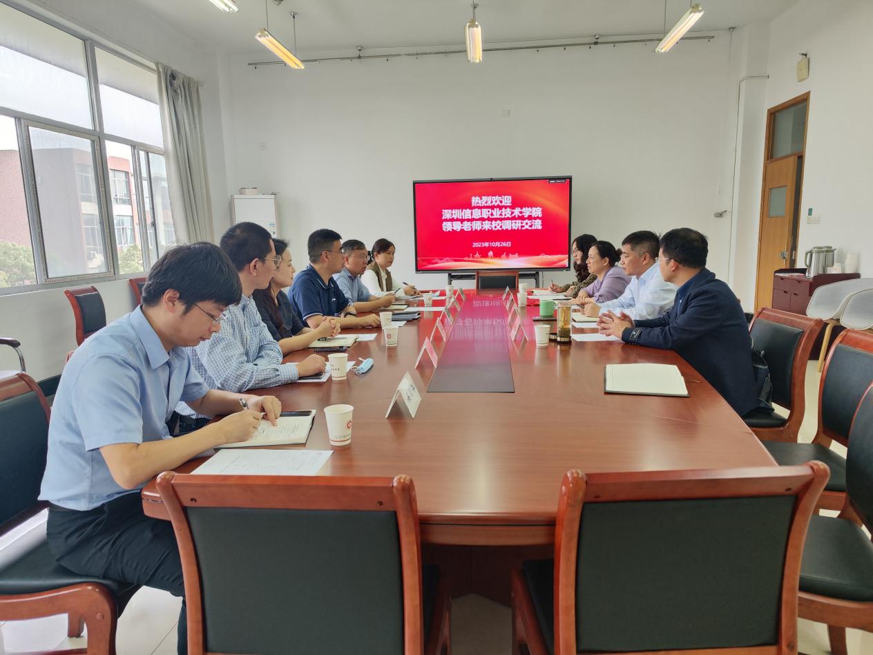 为进一步加强校际交流合作,促进学校学院共同发展,达到相互学习、相互借鉴,共同提高、共谋发展的目的,10月26日,深圳信息职业技术学院财经学院院长张立军一行来我院考察交流。会计学院院长王忠孝、金融管理学院副院长吴金旺、会计学院副院长张惠君、办公室主任柴向卫、大数据与会计教研室副主任吴诗怡在7418会议室进行接待,双方进行了友好而深切的交流。