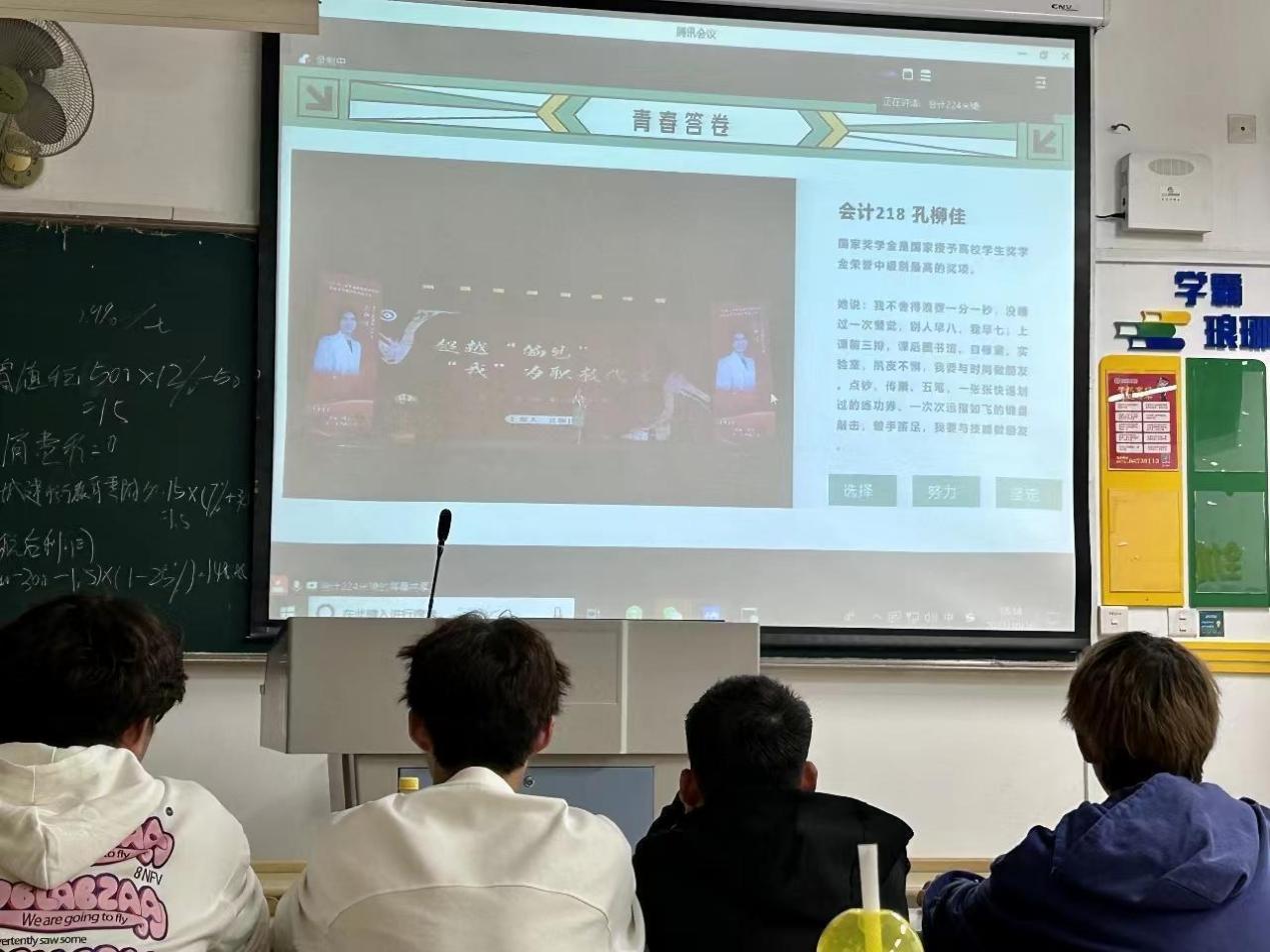 第一部分,杨冰围绕“以学铸魂,以学正风”向我们介绍了学院的学风建设理念。将学习比作游戏,通过生动有趣的课堂活动激发了同学们对学习的热情。并且向同学们介绍了我院优秀学子孔柳佳获得国家奖学金的光荣事迹,以此激励同学们传承学风奋发向上。