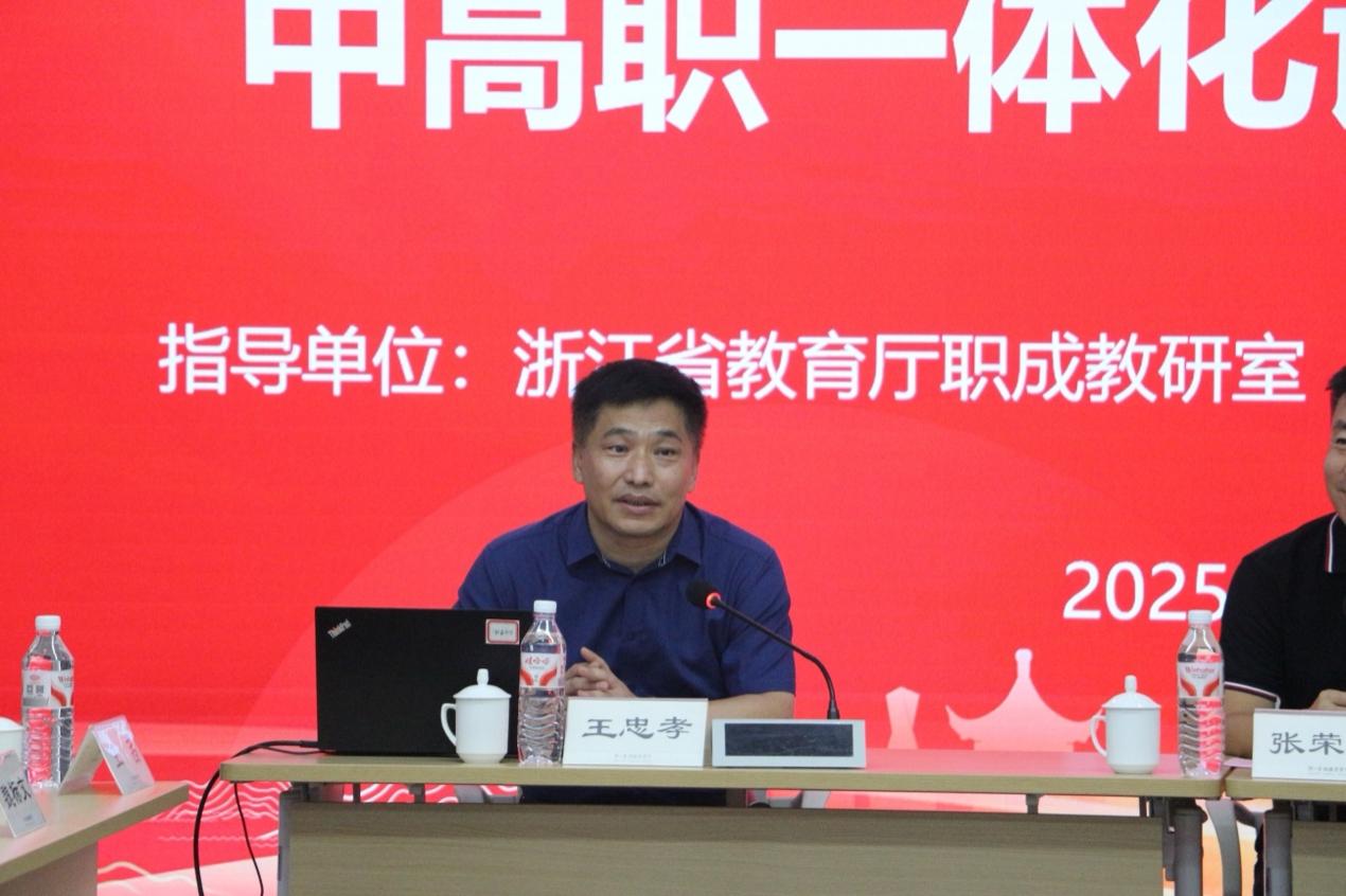 浙江省教育科学研究院职教所于丽娟所长讲话,强调了全面落实一体化教学标准是浙江省课程改革的主阵地,而在财会专业领域推进中高职一体化试点赛是一体化培养体系建设的关键环节。她表示,本次试点赛是在中高职的教学常态情况下对财务会计类专业的新探索,也是会计职业技能人才质量的重要保障。