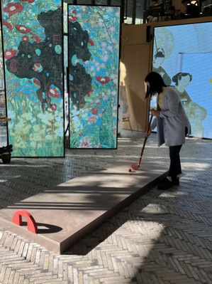 手工体验结束后,还设置了互动环节。女教师们以雅集为伴、以诗词为媒,共吟经典、隔空对话古人,在耳熟能详的词句中感受宋词的韵味;捶丸、投壶等传统民俗小游戏,让大家在欢声笑语中舒展身心、增进情谊,进一步丰富了活动体验。